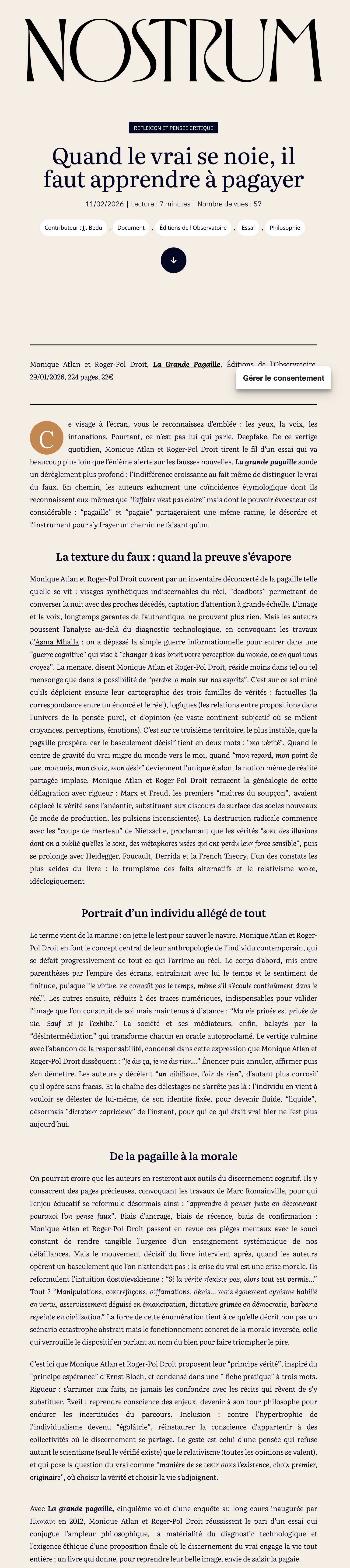 Et si, en fin de compte, la meilleure issue était de considérer le tri entre vrai et faux comme une affaire morale ?